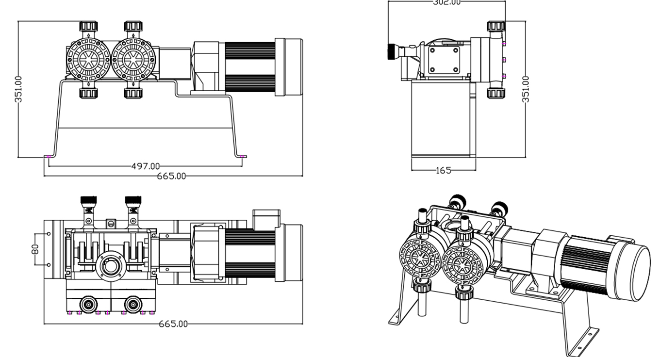 也可同時吸入同時吐出(可調(diào)比例泵同時添加)適用于紡織機(jī)械的燒堿與染色劑的比例添加。